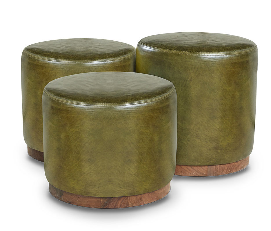 Upholstered in rich, top-grain leather and grounded by a warm walnut wood base, the One For Victory Radius Ottoman creates the perfect accent piece.