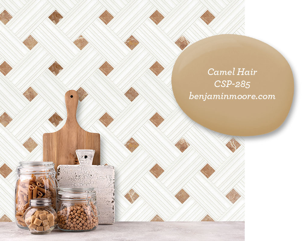 The handmade Cupboard & Clay Groove Etched with Thassos Standard & Arancio Di Selva wall tile is made to order and adds a refined look to any surface.