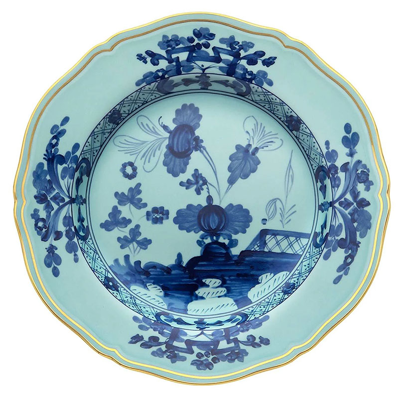 This set of porcelain dinner plates imbue with charm and timeless allure. Part of the Artemest Oriente Italiano collection, the Iris Set enlivens a table with color and a touch of gold.