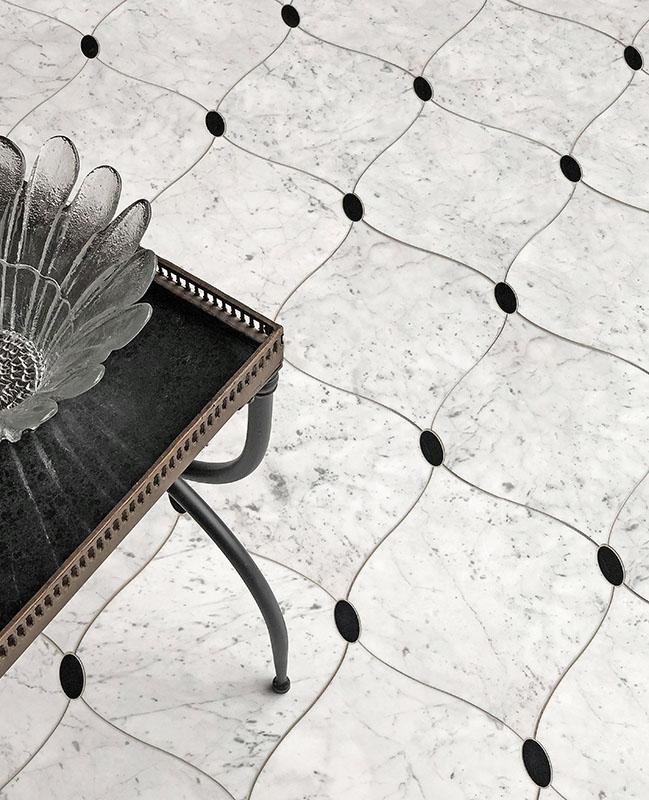 Cupboard and Clay, made to order tile, in Chelsea with Carrara & Nero Marquina.