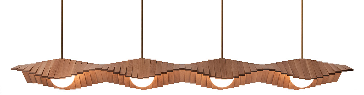 The Moon Moon Wave IV Chandelier was mirrored after the Olympic Mountain range and the undulating waves and invertebrates along the shallows of the shore.