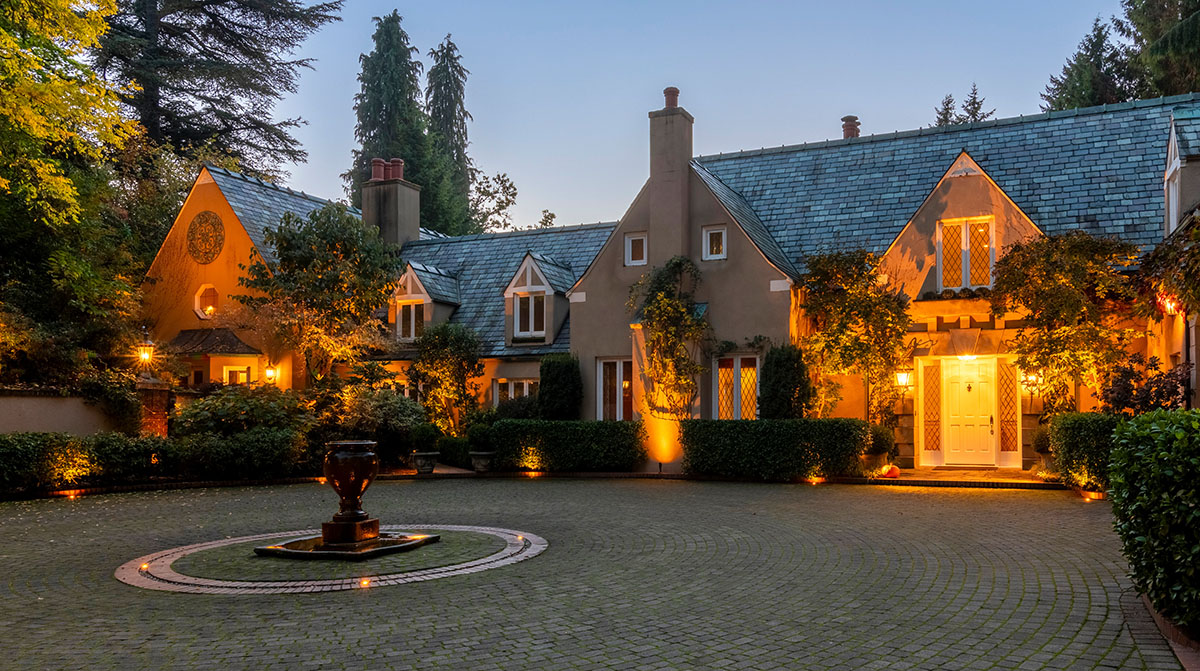 A historic estate in Shoreline features a custom lighting design with nearly 260 lights by Northwest Outdoor Lighting to highlight the home’s timeless architecture and elegant landscape.