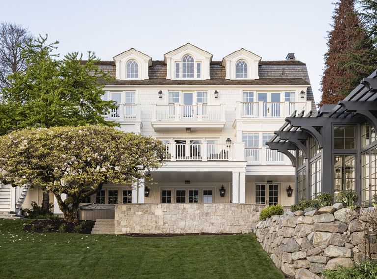An exquisitely traditional modern home upon a 1960s lakeside home’s foundation. together Susan Marinello Interiors, Ripple Design Studio and March-MacDonald, Inc. worked seamlessly to design and build.