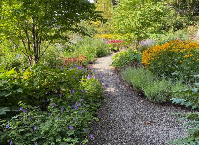 The great challenge for Anne James was to transform a fully developed garden formerly requiring intensive maintenance and high water use into a garden that would fulfill the demands of the LBC Petals. “First, we identified some key strategies to reduce irrigation water use that resulted in a 60% reduction from previous use,” says James. Large native evergreens were more carefully protected and high water use plants edited out. James also created a mycological foraging forest by introducing gourmet mushroom mycelium in various forms.