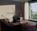 Sustainability is the quiet backbone of the home. Concrete consumes minimal materials, energy, and other resources for construction, is a natural insulator, and requires little to no maintenance. Eschewing an air conditioner for environmental reasons, the house is built with passive heating and cooling principles. Skylights are on a heat sensor to open for passive stack ventilation. Radiant ceilings and floors use high-efficiency hydronic heat. The home has a green roof and other permeable surfaces that handle stormwater onsite.