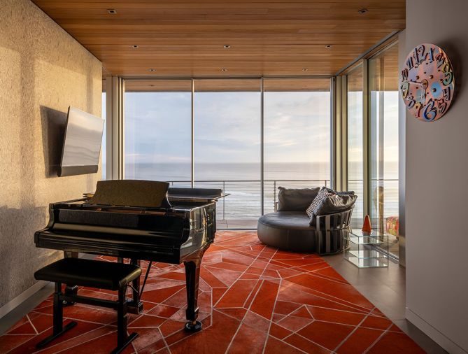 The homeowners feel very blessed. “We cannot stop looking out at the ocean, clouds, and sky. It’s mesmerizing and so spiritual. Living here, our lives have been so enriched by the number of incredible sunsets we’ve experienced. That’s why we feel incredibly fortunate that the house turned out to be so amazing. It has given us so much joy in our lives. The fact Daren and Lisa could take advantage of every square foot of the lot that was buildable despite its setbacks and then gave us the opportunity to work with the inside, just gave us so much fun!”