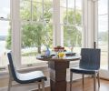 A trip to the Blue Whale in Los Angeles enabled Kleiner and the homeowners to discover plenty of outdoor furniture suitable for making the expansive waterside deck another living space. Thanks to porch ceiling heaters, the porch is habitable ten months of the year.