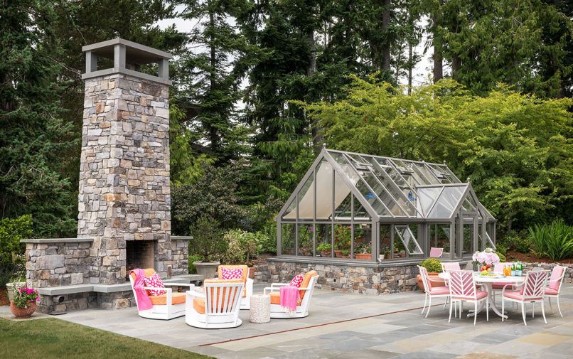 On rainy days, you might find the couple sipping coffee inside the Hartley Botanic greenhouse, enjoying the peacefulness they’ve found in their new home. “We were blown away by the spectacular setting when we first saw the property,” says the woman, “but there was a formalness we wanted to tone down. Thankfully, Julie has made the house so polished and pulled together while also being very laid back and comfortable, which fits our lives to a T!”