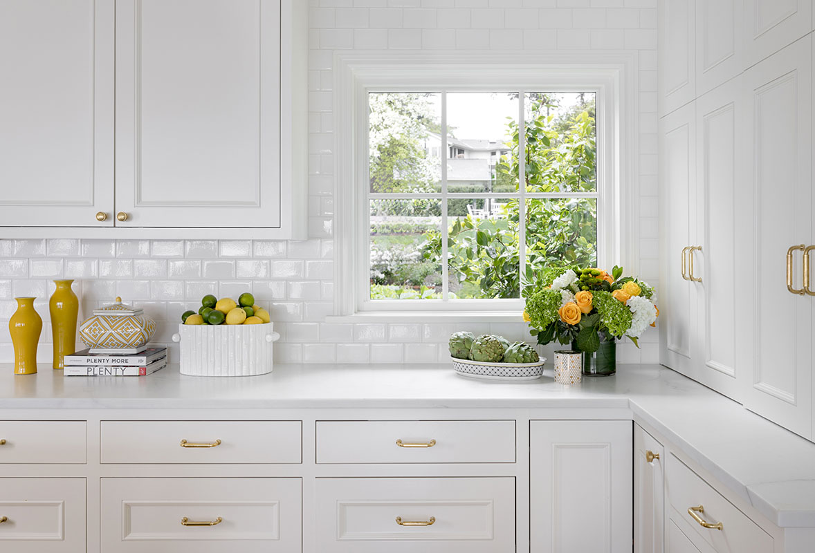 Debbie Turner transformed a dark, dysfunctional, and cramped kitchen into a place that’s gracious and inviting, a design that is perfect for a client that likes to entertain. This was accomplished by first removing the wall between the dining room and kitchen, and extending the home under the rear roofline. This approach preserved the historic front façade of the home, while connecting the room to the backyard, maximizing the natural light, bringing in the incredible views of Lake Washington from multiple points, and facilitating indoor and outdoor entertaining. The large central island with seating, abundant perimeter storage, and a built-in eating nook ensures the cook can work uninterrupted, while a nearby wet bar is available for guests.