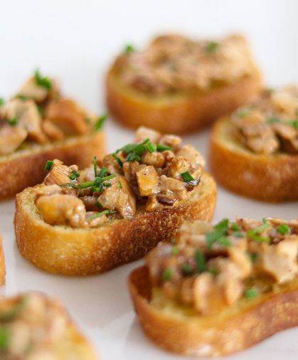 Mixture can be made one day in advance. Store in an airtight container in the refrigerator. Gently reheat before spreading on toasts and serving.
