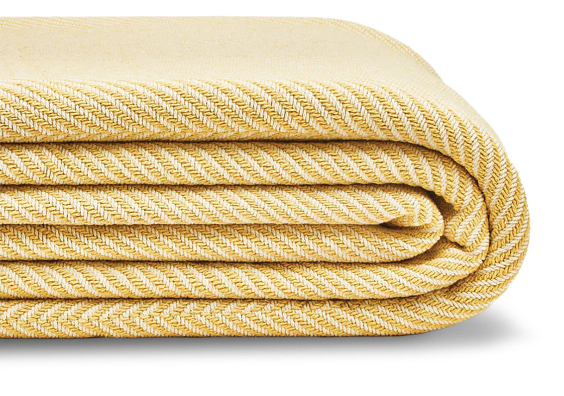 The Prairie Yellow Heritage Blanket, made with Authenticity50’s “seed to stitch” approach, with all material sourcing and production in the US.
