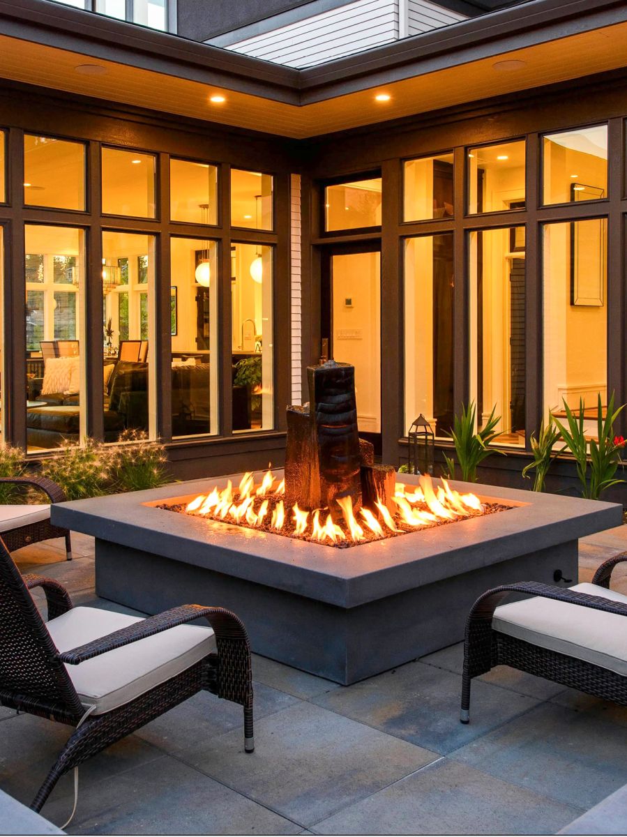 Add warmth with the Cement Elegance Tranquil Firepit. The design offers high BTU output and can be plumbed with natural gas or propane. Made in Bend.