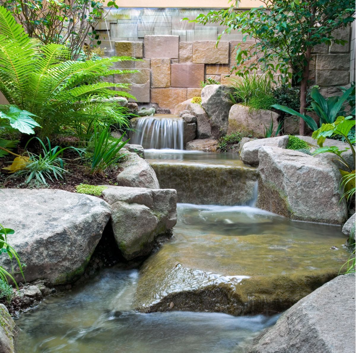 This intimate design allows water to fall as smooth as a sheet of glass before sliding down Wilkeson Sandstone masonry, then finally gathers in a pool of High Cascade Granite at the base. Created by Seattle’s SHD Landscape Architecture.