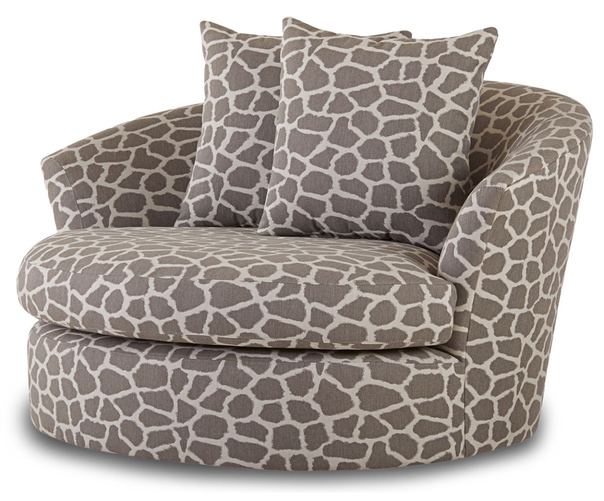 A favorite of Seattle, ID by Gwen, designer Gwen Dumont, is the Lee Industries Maya Outdoor Chair and A Half. It swivels, comes with two throw pillows, and is shown here in a lively “Giraffe Stone” pattern.