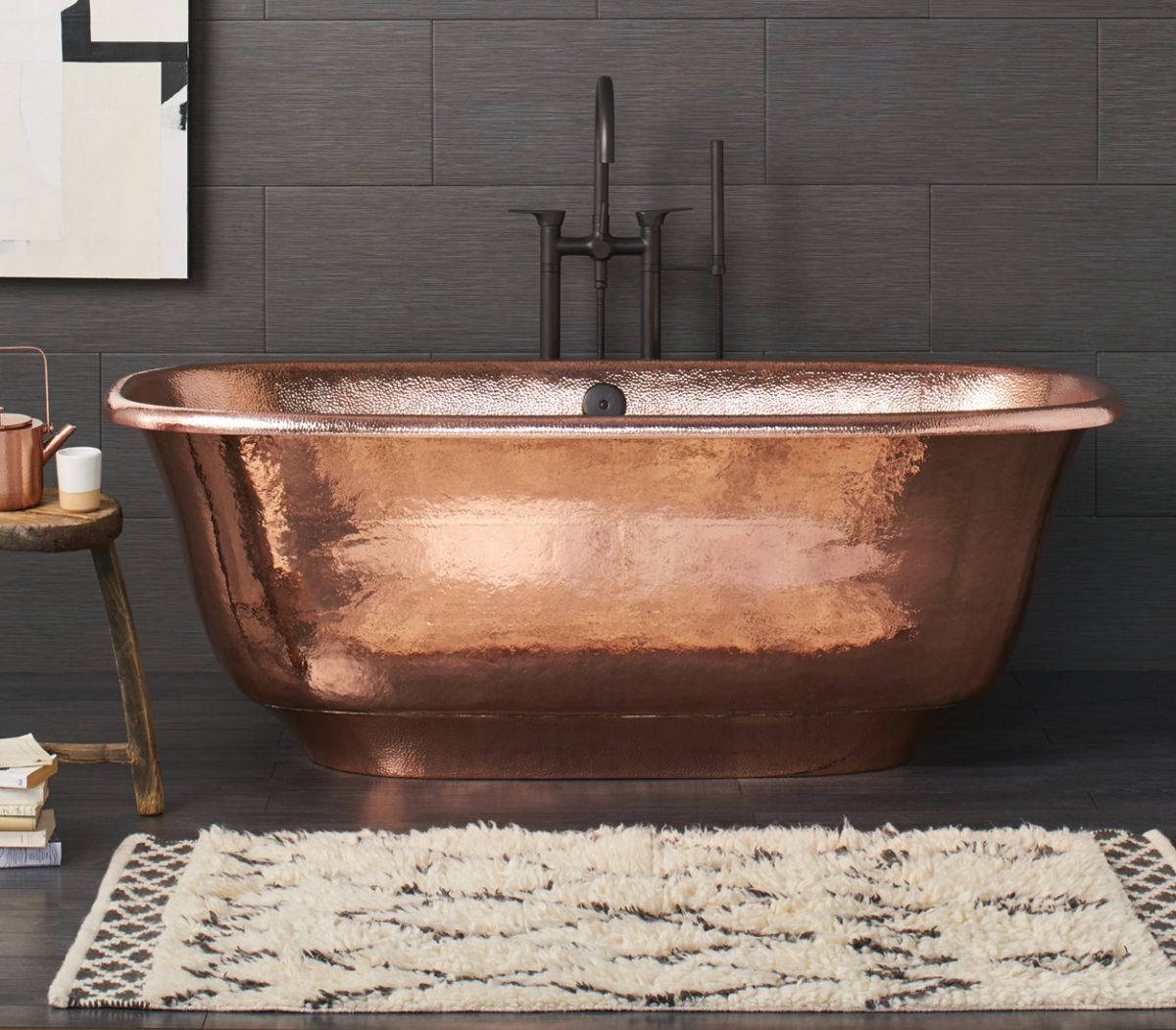 The Santorini Freestanding Copper Soaking Bathtub takes thousands of hammer strikes to perfect. Crafted and forged of high-quality recycled copper, this tub tells the story of generations of Mexican artisanship.