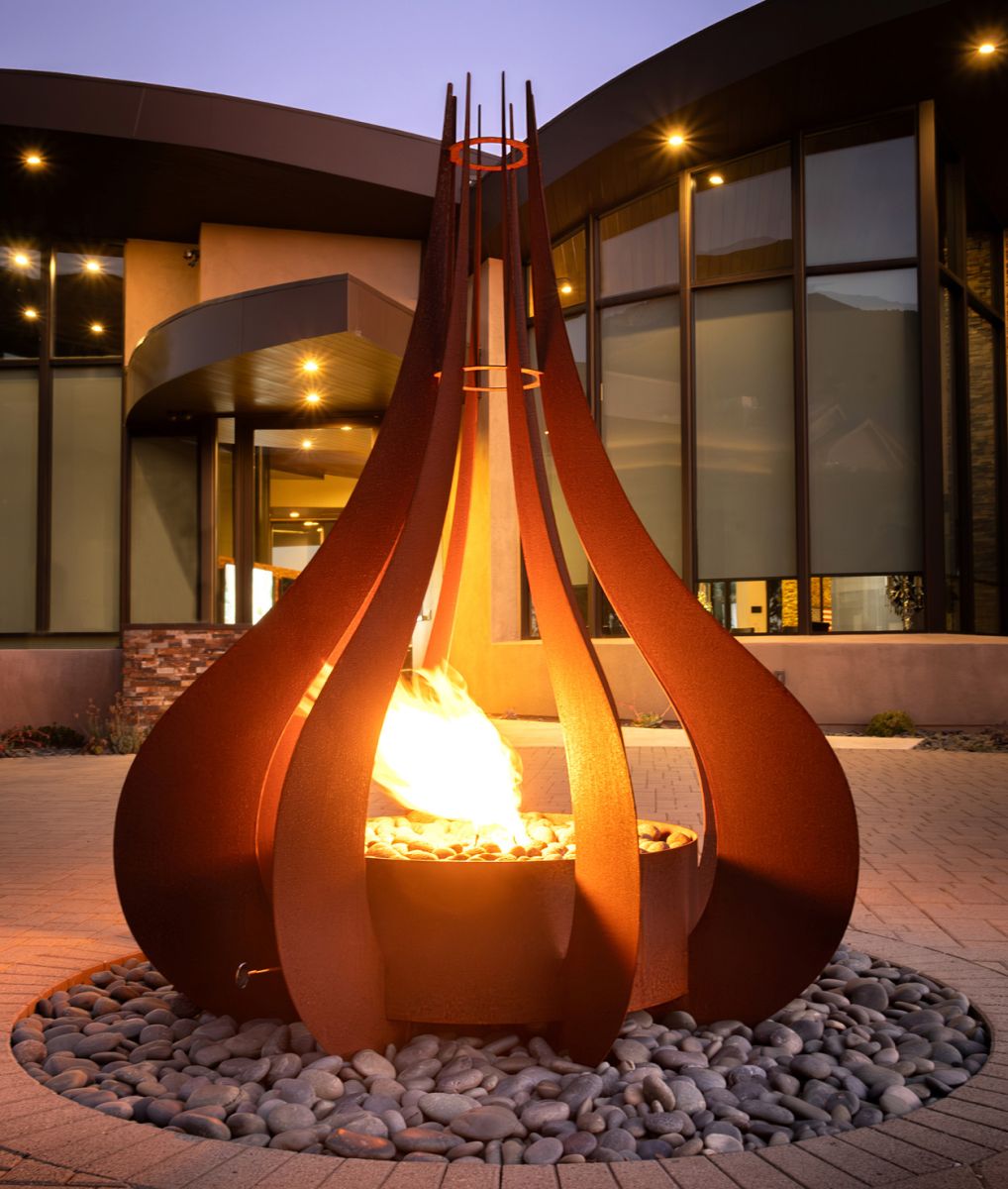 This work of art is crafted for those who seek to redefine their environment through world-class engineering and timeless design. The Comet fire feature from The Outdoor Plus is forged from premium stainless steel, copper, and Corten steel. Available locally through Lisac’s Fireplaces & Stoves.