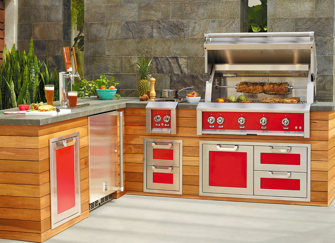 The ultimate in luxury, the Hestan Outdoor Living Suite in “Matador” is install-friendly and offers cutouts for a grill, side burners, storage and undercounter refrigeration. It also comes equipped with weatherproof outlets and single-point gas and electrical connections.  Available at Standard TV & Appliance.