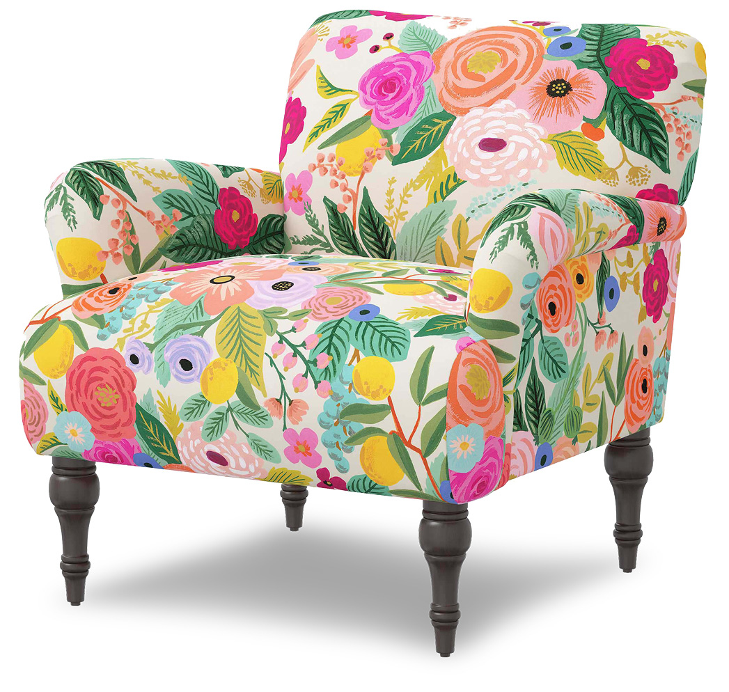The Bristol Armchair from Cloth & Company is upholstered in Rifle Paper Co.’s “Garden Party” pattern. The classic design is perfect for curling up with a good book. An exclusive made-to-order piece.