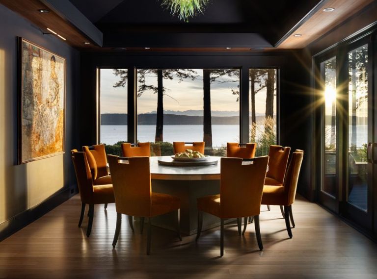 Eclectic Designs, AOME Architects, and Gradwohl Construction, LLC create an elegant waterfront home infused with art in every room.