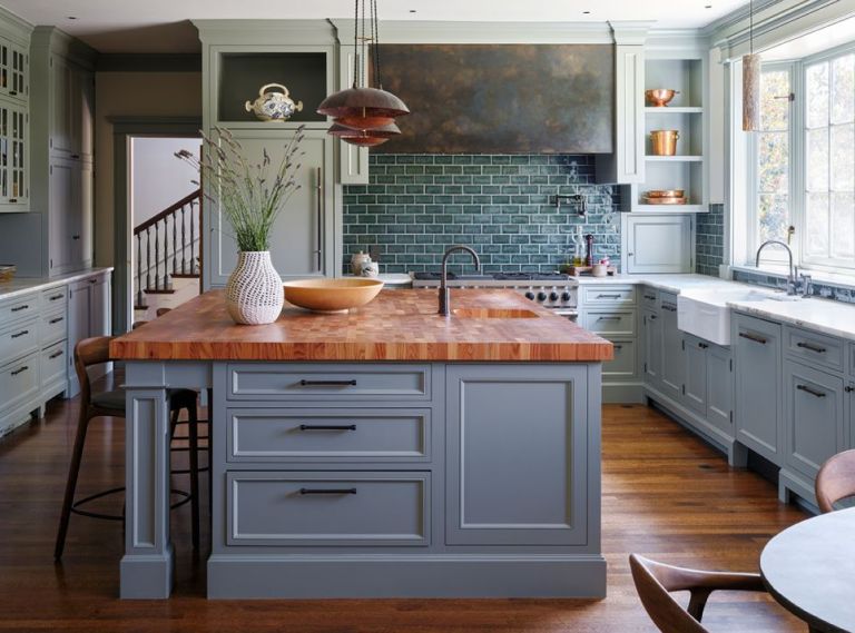 Custom storage and colorful wallpaper bring this 1912 house to the next level, courtesy of Nifelle Design and Northwest Heritage Renovations.